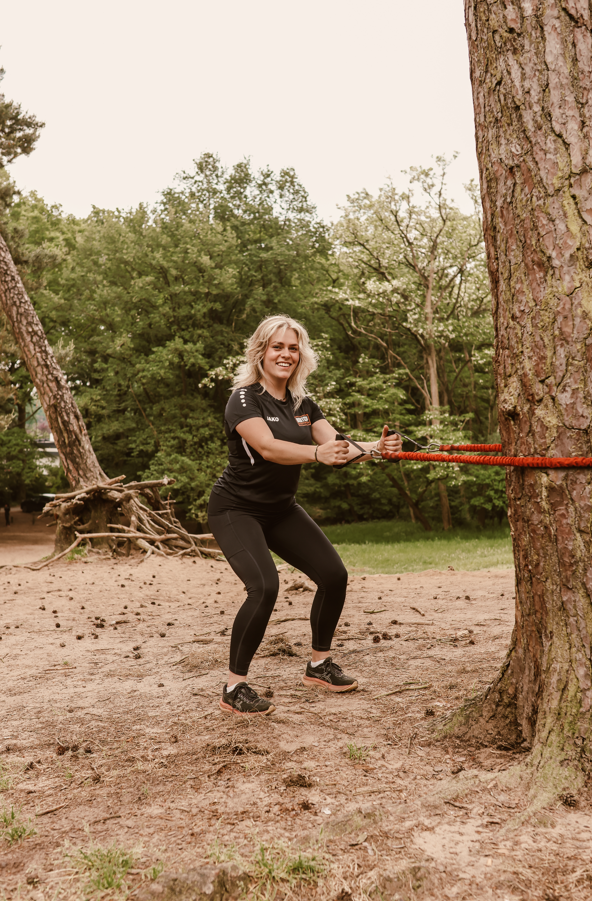 In begin wist ik nog totaal niet wat ik na mijn opleiding moest gaan doen, maar door mijn stage en nu inmiddels werk ben ik er achtergekomen dat ik super graag in de buitenlucht training geef aan groepen; jong of oud maakt niet uit! Ik organiseer namelijk ook graag bootcamp kinderfeestjes.